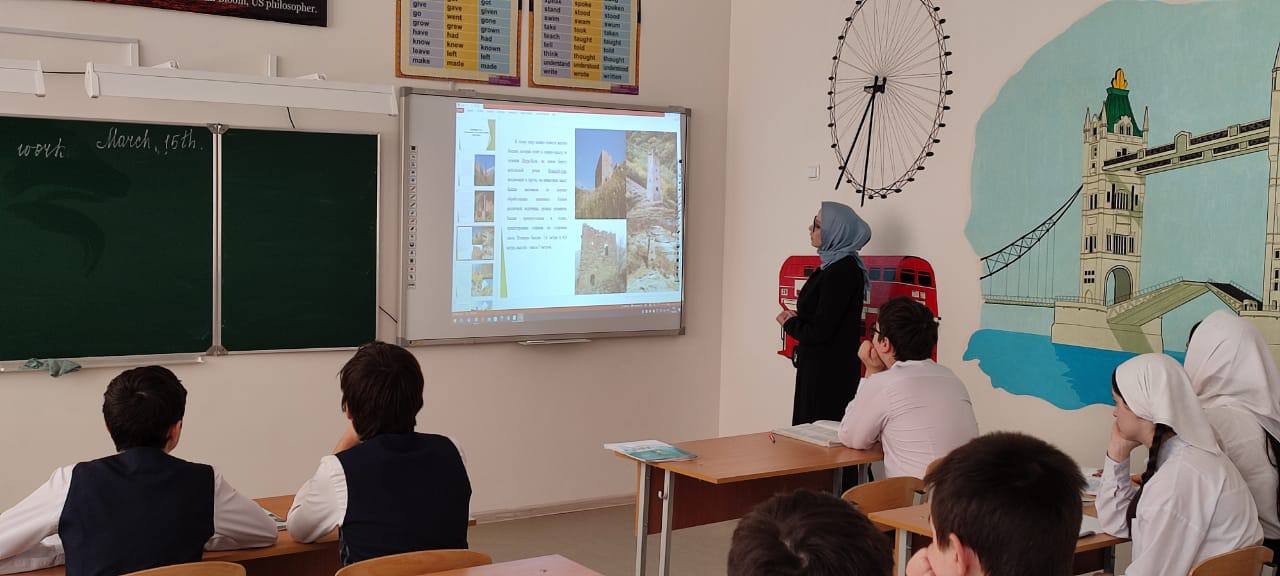 15.03.2022Сегодня нашу гимназию посетила уважаемая гостья - сотрудник Национального музея Чеченской Республики - Галиева Мата Нурулаевна провела профориентационную беседу с учащимися 7 класса, на тему: "Трансформация и ареал распространения жилых башен". Ребята узнали много нового о том как строились жилые башни наших предков.