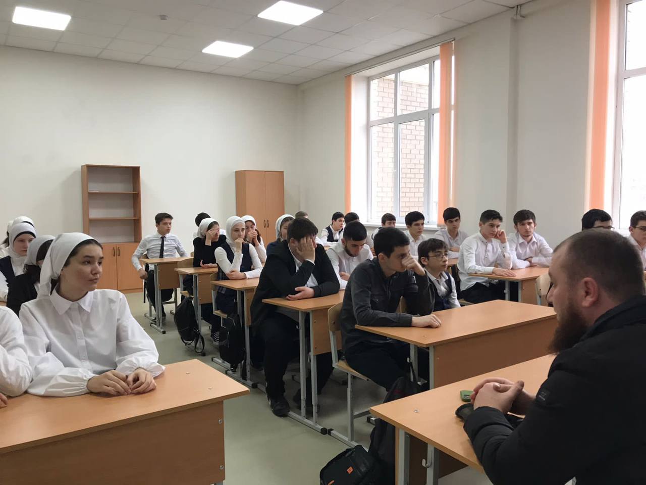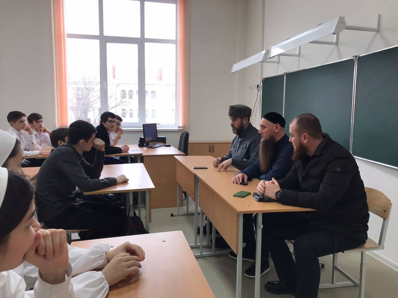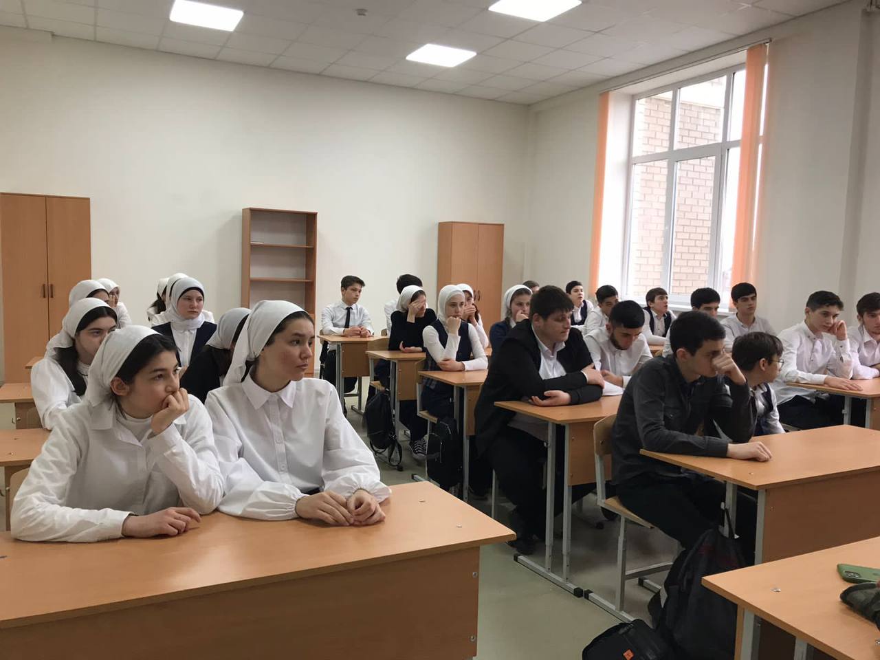 нашу гимназию посетили сотрудники Префектуры и Администрации Шайх-Мансуровского района, а также Кади района Гости совместно с нашим педагогом ДНВ Асланбеком Мусаитовичемпровели профилактическую беседу с учащимися 8-10 классов нашей Гимназии