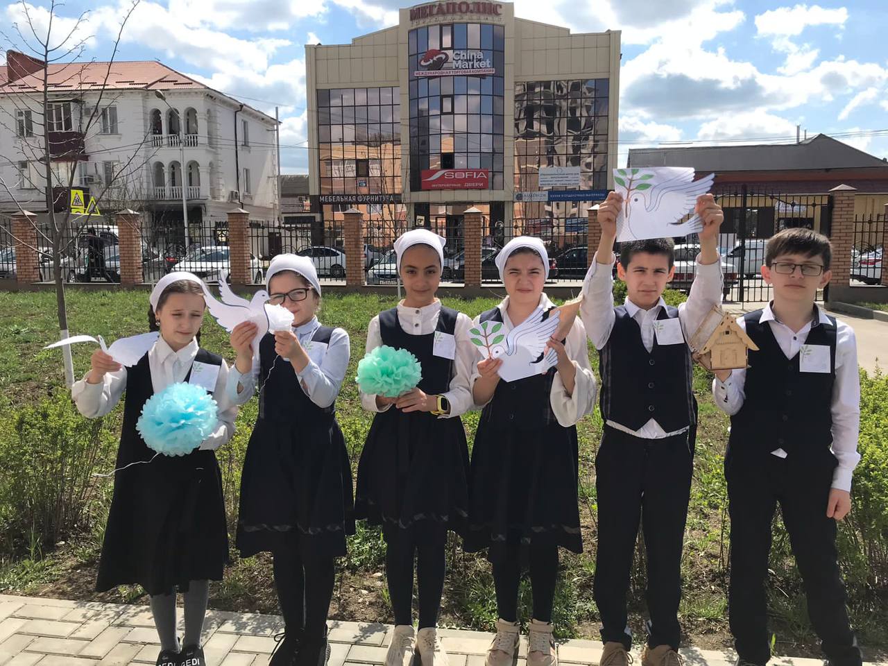 16 апреля 2009 года было принято судьбоносное решение об отмене режима КТО. После чего глава ЧР герой России Р. А. Кадыров объявил этот день Днём мира. Наша Гимназия приняла участие в акции посвящённой Дню мира