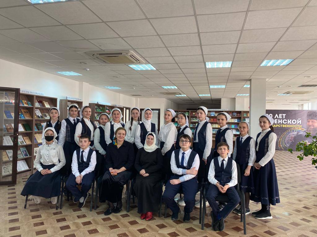 18.04.20225-чу гимназин 6 классашкара дешархоша дакъалецира Айдамиров Абузаран ц1арах йолу Нохчийн Республикин къоман библиотекехь д1ахьучу «Нохчийн йаздархой машарехьа» мероприятехь, Нохчийн меттан дезчу денна лерина йолу. Оцу вовшахкхетарехь дешархоша ненан маттахь йийшира нохчийн классикийн поэзин говзарш. ТIекхуьучу тIаьхьенгахь патриотически дог-ойла г1аттош, ненан матте безам кхуллуш декара церан зевне аьзнаш. Маттаца дозаделла ду х1ора къоман г1иллакх-оьздангалла, психологи, дуьненан хьежамаш. Нохчийн маттаца ду вайн къоман доьналла, майралла, йу вайн историн лараш. Г1иллакх-оьздангалла шеца долуш стаг хилалур вац шен ненан мотт безаш, хууш вацахь! Дешархой кечбина Нохчийн Республикин хьакъйолу хьехархочо Исаков Наврдин Бирланта.