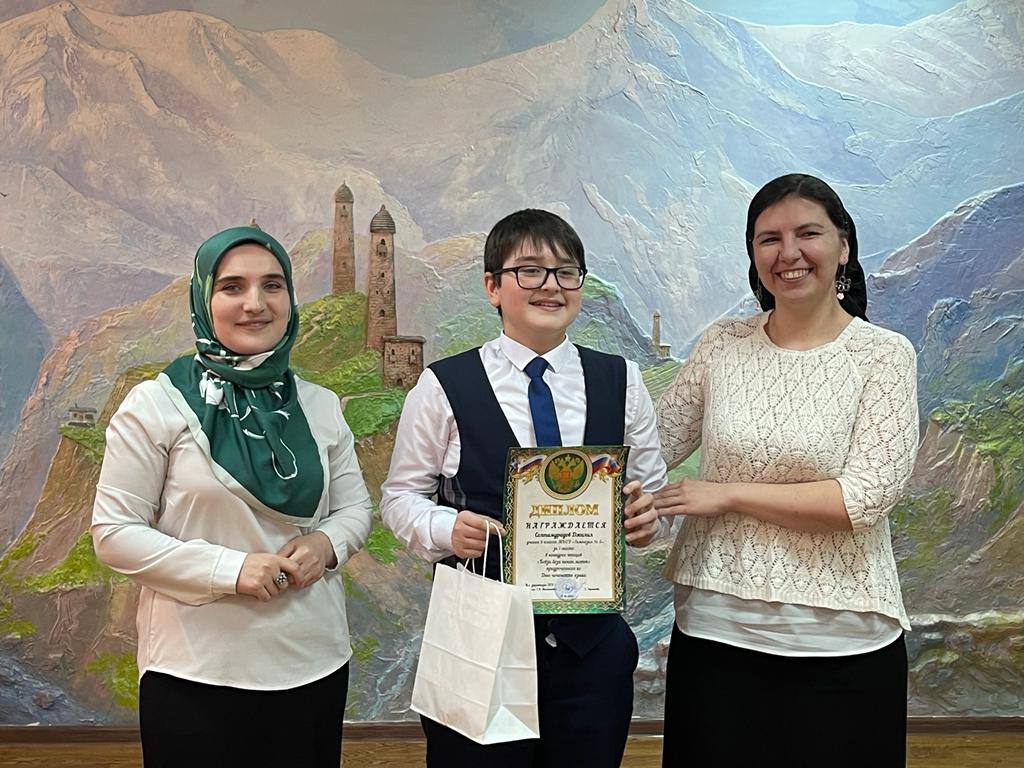 21.04.20225-чу гимназин 6 классашкара дешархоша дакъалецира Нохчийн Республикин берийн С. В. Михалков ц1арах йолчу библиотекехь д1ахьучу тоьлла йешархо къовсадаларехь «Бовза, беза ненан мотт». «Ненан мотт – иза халкъан йуьхь ю, халкъан орам бу. Шен мотт ца хилча, халкъ хуьлуш дац. ХIора нохчи, нагахь санна шен халкъ а, Даймохк а безаш велахь, шен ненан мотт Iамош а, хууш а хила веза. Iамадейша дуьненан дерриге а меттанаш, амма цкъа шайн ненан мотт а Iамабай, оцу маттахь йаздан а, деша а Iамадай...», – Айдамиров Абузаран дешнаш. Хьоста – иза цхьа шатайпа эсалчу озаца къамеле даьлла, лаьттах бухдуьйлу шийла шовда ду. Иштта дагах бухдуьйлу хьоста ду ненан мотт. Дешархоша йийшира нохчийн литературин г1арабевллачу классикийн исбаьхьа поэзи. Дипломашца билгалбехира, Тоьлла йешархой: меттиг - Солтамурадов Джалил, 6 "А" классан дешархо; меттиг – Духаева Санета, 6 "Б" классан дешархо; меттиг – Джунаидова Самира, 6 "А" классан дешархо. Говза йешархой: Заурбекова Медина, 6 "А" классан дешархо; Касаев Бекхан, 6 "В" классан дешархо. Дешархой кечбина Нохчийн Республикин хьакъйолу хьехархочо Исаков Наврдин Бирланта