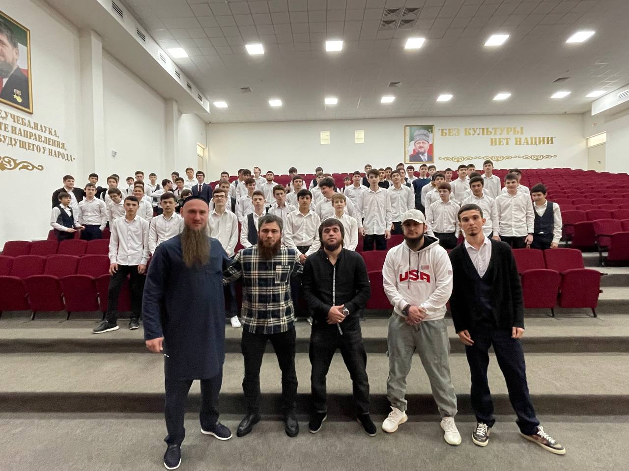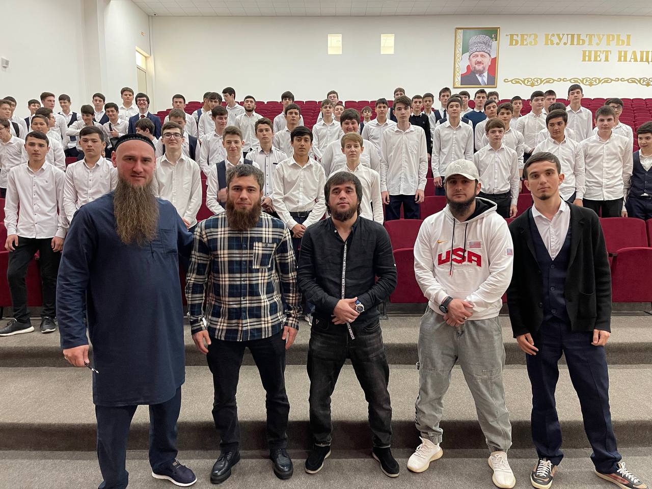 25.04.2022Сегодня нашу Гимназию посетили дорогие гости: Эльшиев Магомед - Чемпион России по вольной борьбе Расул Албасханов - МС по вольной борьбе; профессиональный боец ММА Абдул-Рахман Дудаев - Чемпион Мира по ММА; Профессиональный боец ММА Гости провели профориентационную мотивационную беседу с учащимися 8-10 классов. Рассказали ребятам о своих путях становления в спорте. Пригласили всех желающих записаться к ним в клуб, а также ответили на вопросы ребят