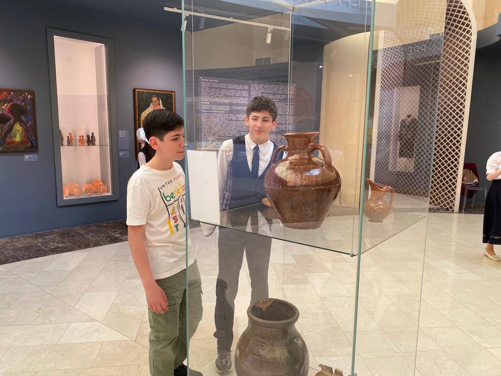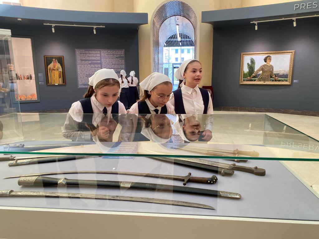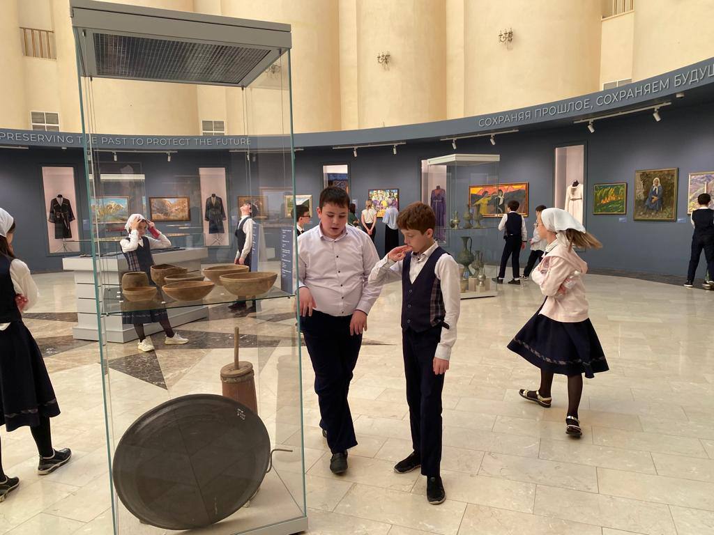 29.04.2022Учащиеся 6-х классов нашей гимназии, под руководством Исаковой Бирлант Наврдиновны, посетили выставку «Искусство – душа народа» в ГБУК «Музей Чеченской Республики». Роль музеев в духовно-нравственном воспитании учащихся трудно переоценить. У чеченцев есть традиция – преподносить гостю всё самое лучшее. Так и выставка стала демонстрацией культурного богатства региона. На войлочном ковре истанг развешаны кинжалы - уникальная работа чеченских клиночников. На переднем плане дечиг-пондур навевает лиричные напевы илли о судьбе народа. Посетив национальный музей, ребята расширили кругозор о культуре и традициях чеченского народа, его истории, а также увидели шедевры мирового искусства.