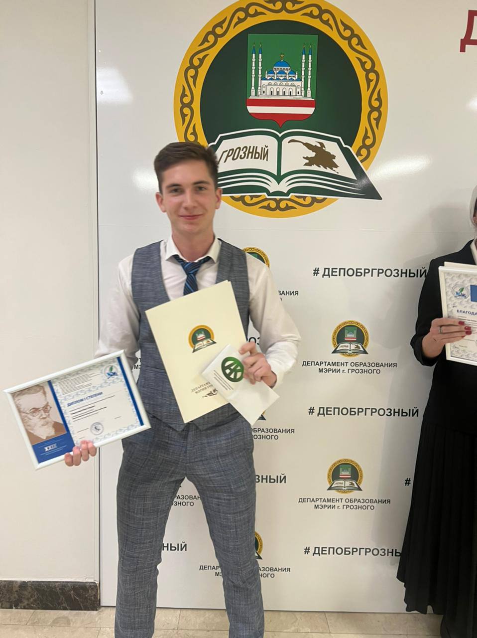 14.05.2022В Москве завершился XXVIII Всероссийский конкурс юношеских исследовательских работ имени В. И. Вернадского. Ко второму туру престижного интеллектуального соревнования были допущены победители регионального этапа, одним из которых стал и наш ученик 10 "А" класса Темирсултанов Марат, получив возможность представлять Чеченскую Республику. Жюри, в состав которого входили ведущие учёные страны, высоко оценило работы грозненских школьников, представленных на стендовой сессии, а затем на пленарном заседании. Накануне заместитель Мэра-начальник Департамента образования Мэрии г. Грозного Зелимхан Мовлаевич Ахматов пригласил Марата и 2-х других победителей и их педагогов, которые готовили и помогали им выйти на столь высокие рубежи, чтобы лично поздравить с первыми шагами в науке. «Вы продемонстрировали навыки, крайне востребованные в современном мире: креативное мышление, нестандартный подход к решению разнообразных задач в сфере программирования и IT-технологий, естественно-научного образования, диалектологии и ономастики. У вас есть все шансы раскрыть себя и найти применение своим способностям», - сказал Зелимхан Ахматов. По результатам работы конференции издан сборник, в который вошли самые интересные работы конкурсантов, в том числе и работа Марата.При этом достижения на этом конкурсе учитываются при поступлении в ВУЗ-ы, поэтому ребята заработали себе дополнительные баллы к результатам ЕГЭ. Марат стал лучшим в секции «Физика и астрономия». Он рассмотрел применение физики при поисках и разведки месторождений полезных ископаемых. Марат уже который раз демонстрирует свои неординарные способности и знания в самых различных областях науки. Он уже давно успел стать гордостью нашей Гимназии. Участвовал во многих престижных конкурсах и получал призовые места, а также принимал активное участие в различных мероприятиях и жизни Гимназии, зарекомендовав себя как прилежный, ответственный и добросовестный ученик Мы очень рады за Марата и желаем ему дальнейших успехов во всех его начинаниях