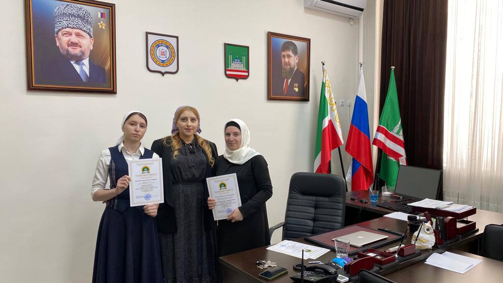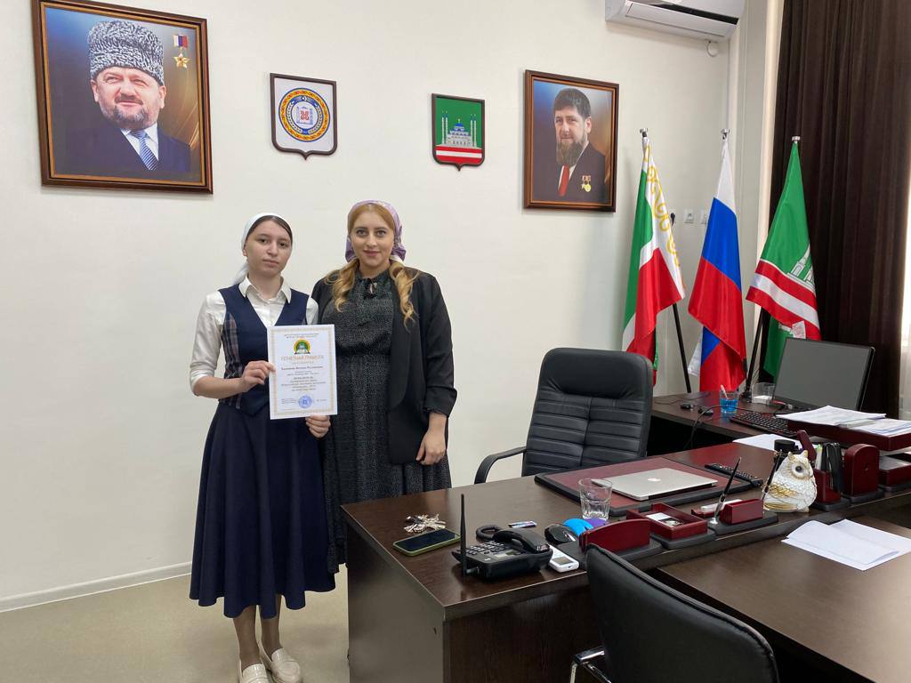 16.05.2022Учащиеся нашей Гимназии: Хадашева Ясминa 9 «Б» класс Тимерсултанов Маратстала 10 «А» класс Айдамиров Мохамед 10 «А» класс - стали победителями муниципального этапа Всероссийской олимпиады школьников «Олимпиада - 2022» по чеченскому языку, астрономии и французскому языку,с чем мы и их и поздравляем Так же Почётной Грамотой за подготовку победителя муниципального этапа Всероссийской олимпиады школьников награждена учитель чеченского языка и литературы нашей Гимназии Исакова Бирлант Наврдиновна