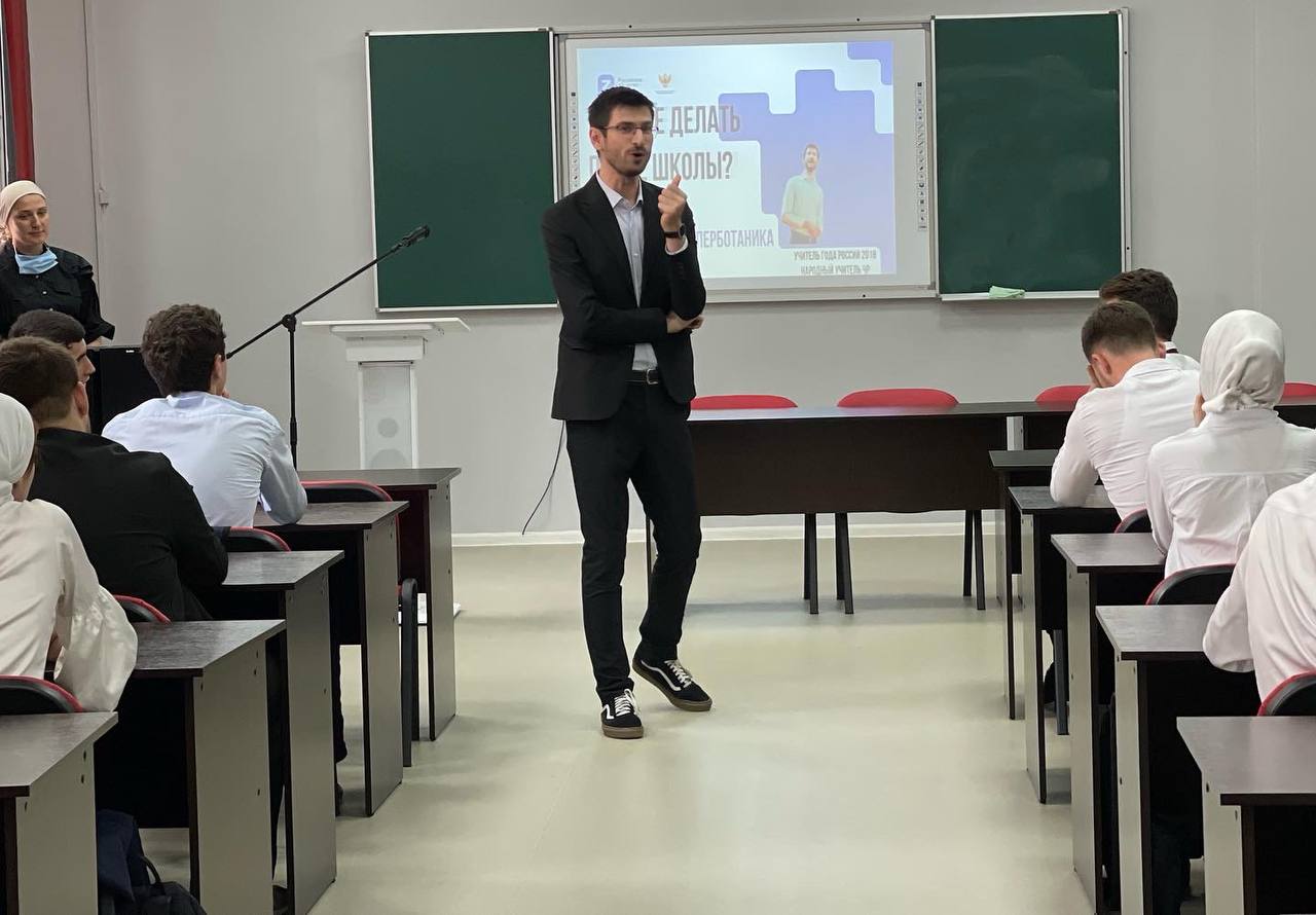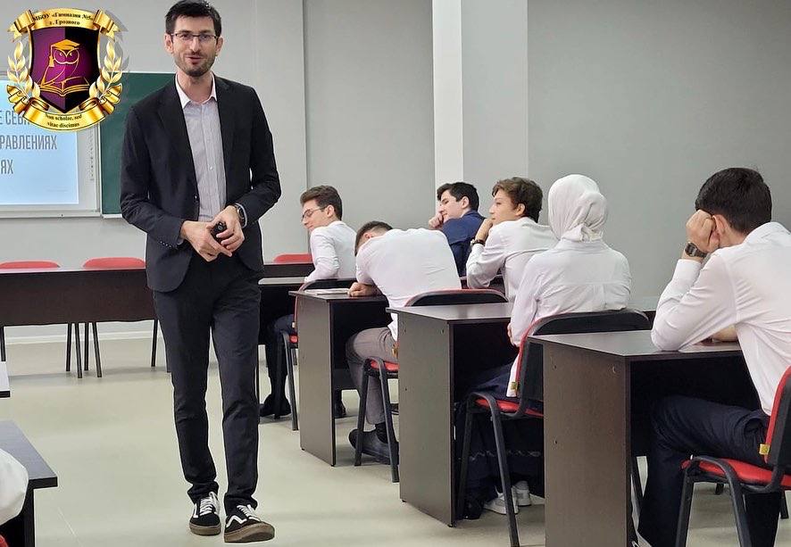 06.09.2022В рамках III Всероссийской просветительской акции «Поделись своим Знанием», организованной Российским обществом «Знание» при поддержке Минпросвещения России и Министерства науки и высшего образования России, нашу Гимназию посетил дорогой гость - победитель Всероссийского конкурса "Учитель года-2018" Кавалер Ордена Кадырова Научный сотрудник МГУ Руководитель педагогической мастерской ЧГПУ Автор бестселлера "Обществознание. Полезная книга о том, как сдать ЕГЭ для школьников и поступающих в вузы" Динаев Алихан Мовладиевич. Он провёл лекцию для учащихся выпускных классов нашей Гимназии, в которой рассказал о своём жизненном опыте и пути становления педагогом, про все терни и предграды, которые ему пришлось преодолеть, чтобы достичь такого успеха Также Алихан Мовладиевич дал наставление нашим выпускникам, с помощью которого им станет намного легче определиться с выбором своего будущего пути в жизни. Ребята очень внимательно и с большим интересом слушали нашего гостя и получили для себя много новой и полезной информации