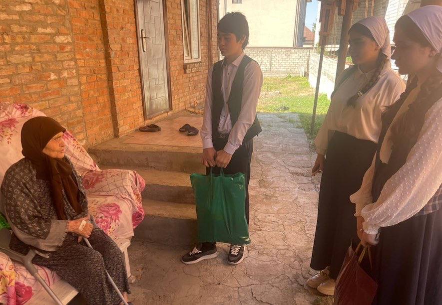 04.10.2022Сегодня отмечается Международный День пожилого человека. В честь этого праздника учащиеся 9-го класса нашей Гимназии под руководством заместителя директора по ВР Маты Ахиятовны посетили наших дорогих долгожителей, а также вручили пакеты с гуманитарной помощью от нашей Гимназии Нужно с ранних лет приучать подрастающее поколение к уважительному отношению к пожилым людям, к умению прислушиваться к их словам и мудрости, учить перенимать их опыт и пытаться постигать новые горизонты , почитая мудрость старшего поколения.