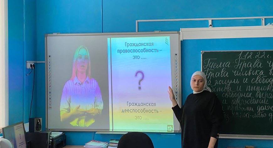 Сегодня учитель истории и обществознания нашей Гимназии Альбекова Лала Хаважиевна провела Всероссийский единый урок в рамках образовательной акции «Права человека», приуроченной к 25-летию принятия Федерального конституционного закона «Об Уполномоченном по правам человека в РФ»