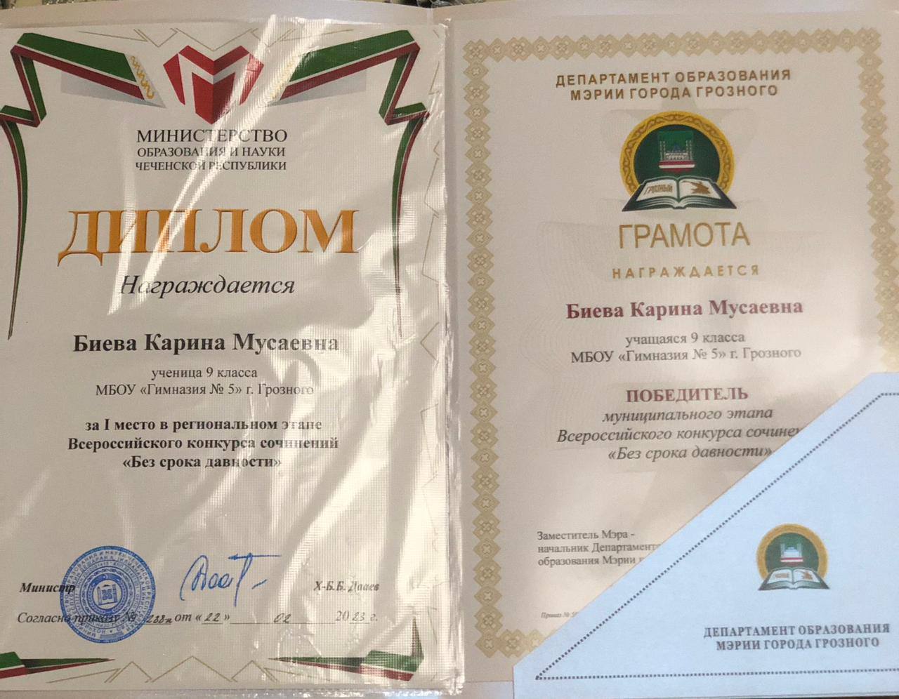 10.03.2023✨Ученица 9 «Б» класса нашей Гимназии Биева Карина стала победителем муниципального этапа Всероссийского конкурса сочинений «Без срока давности»🥰👏🏼