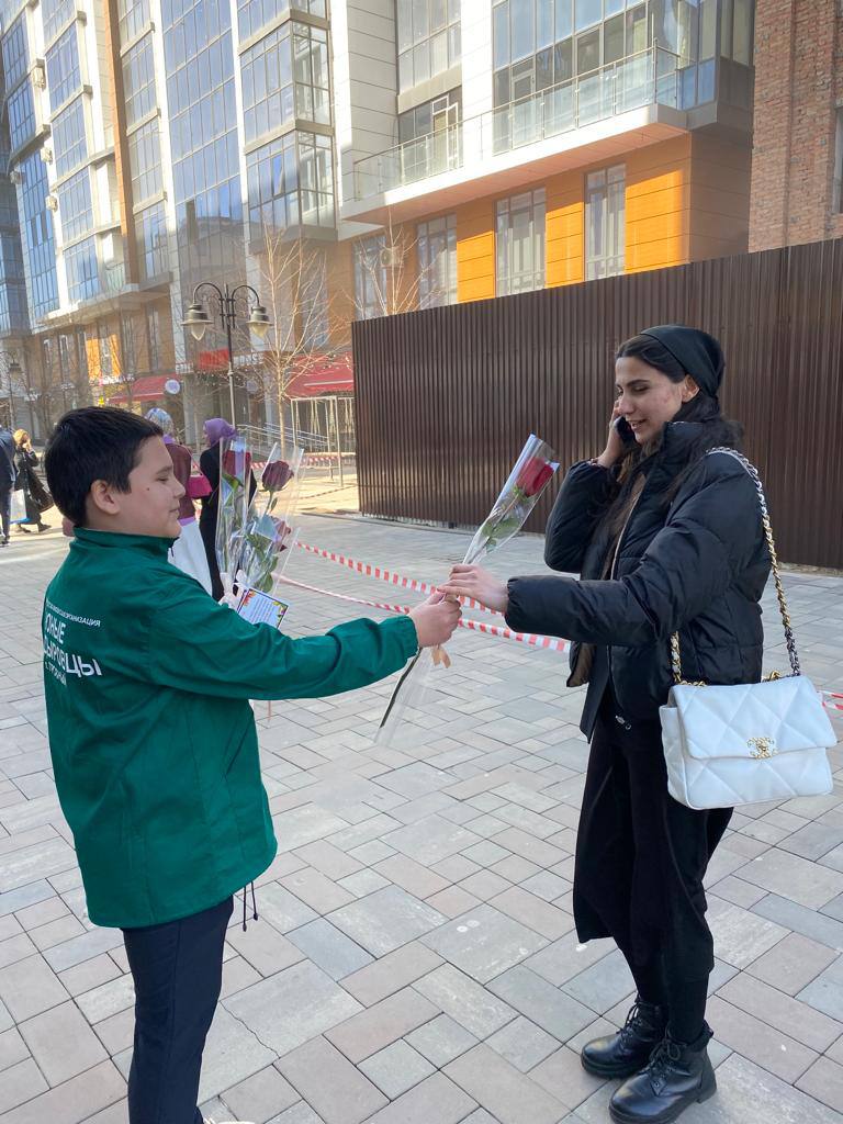 ✨Активисты ЕДЮО «Юные Кадыровцы», из нашей Гимназии, приняли участие в Акции «Прекраснее весны!» , инициированной Мэрией города Грозного посвящённой празднику 8 марта🤗🌹