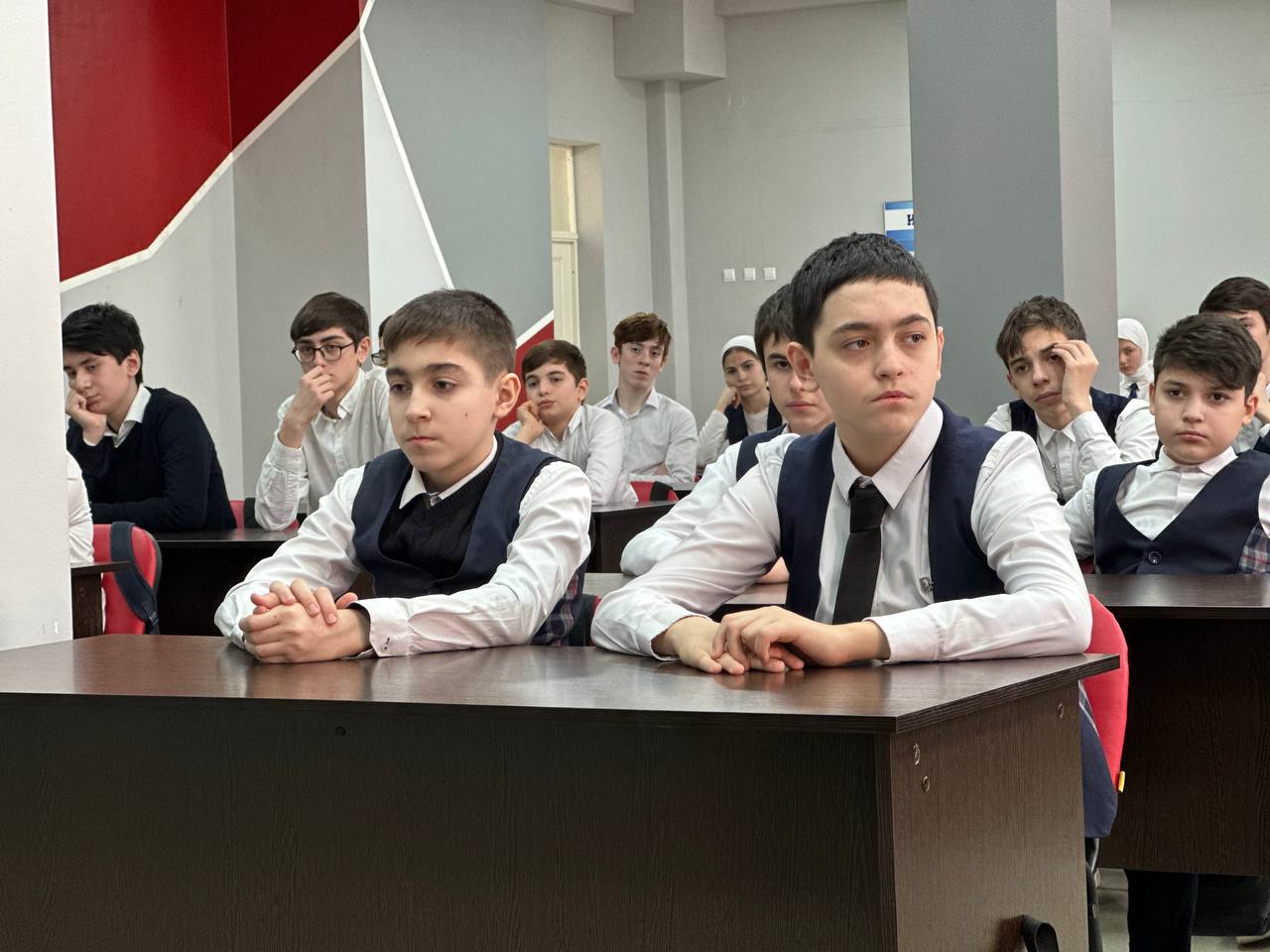 ✨Гость, совместно с заместителем по ВР Расулом Кюриевичем и заместителем Кадия - Председателем общественного совета по ДНВ Шейх-Мансуровского района, а также советником директора нашей Гимназии Асланбеком Мусаитовичем, провели профилактическую воспитательную беседу с учащимися 8-10 классов на тему профилактики дорожно-транспортного травматизма, безнадзорности и легкомысленного поведения в сети Internet✅🌐