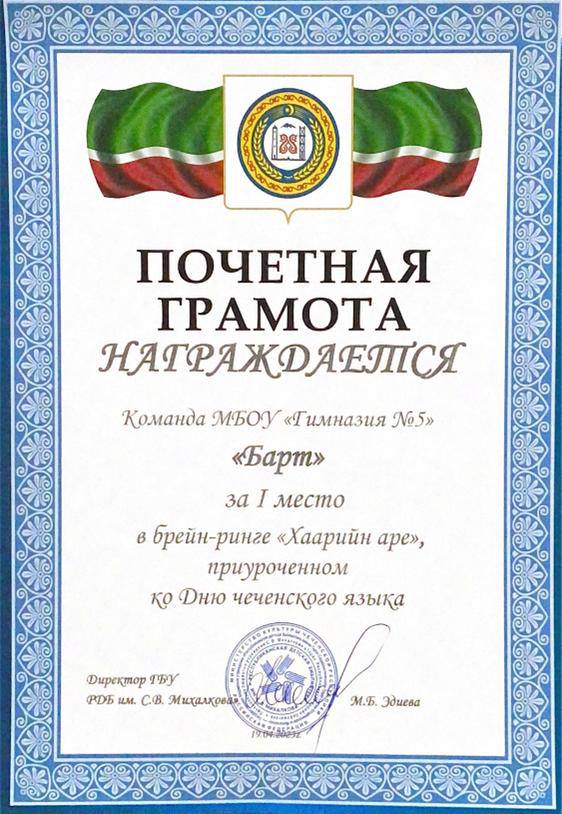 ✨Тхан гимназин «Барт» тобано 1-ра меттиг йаьккхира.