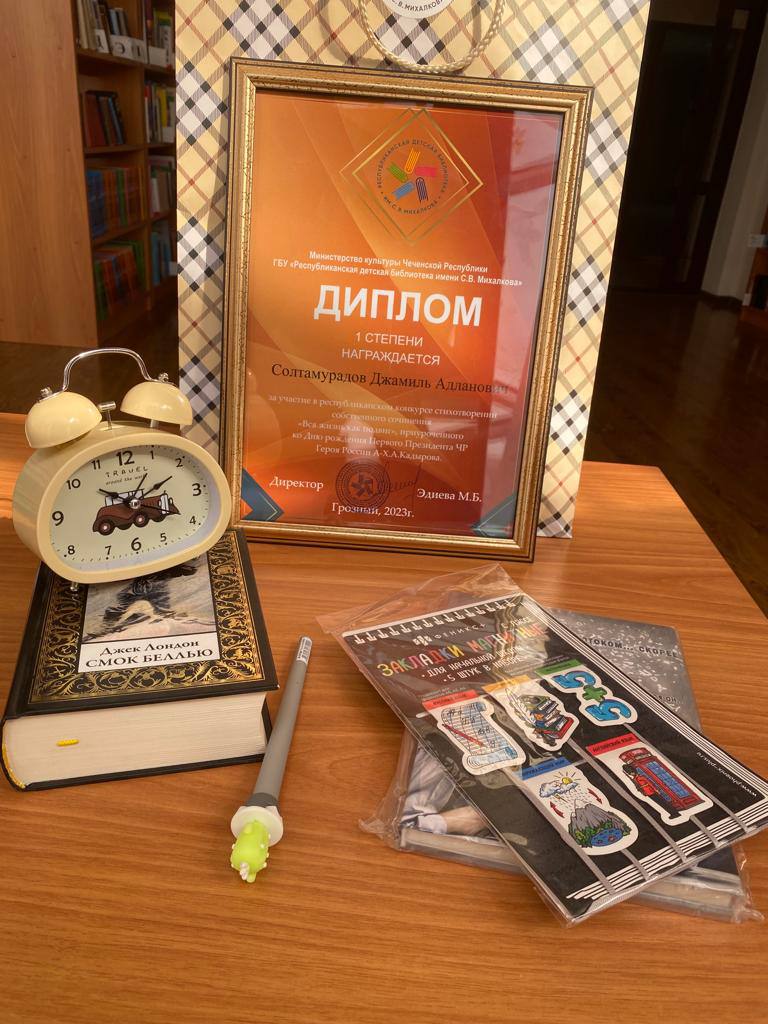 По итогам конкурса ученик 6 «А» класса Солтамурадов Джамиль Адланович был награждён дипломом победителя I степени и памятными призами, с чем мы его и поздравляем.
