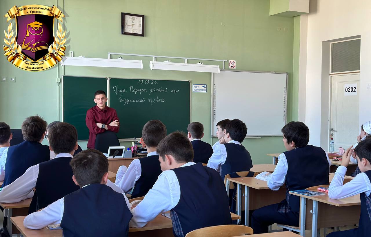 Учитель ОБЖ нашей Гимназии Салтукиев М. Б. провёл урок-инструктаж для учащихся 8-11 классов на тему: "Правила и порядок действий населения по сигналу «Воздушной тревоги»"