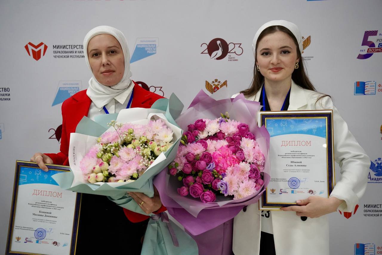 Во время торжественной церемонии закрытия конкурсных испытаний, заместитель министра образования и науки Чеченской Республики Ахмед Усманов объявил имена трех победителей регионального полуфинала «Флагманов образования». Среди них учитель нашей гимназии Ибаева Седа Альвиевна, учитель русского языка и литературы.