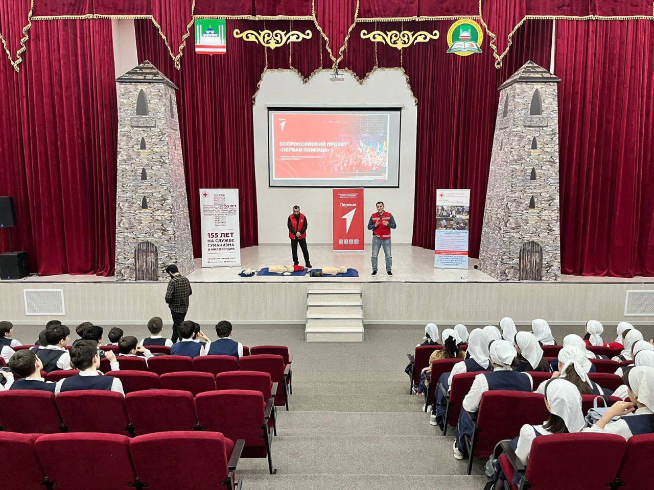 01.03.2024В рамках реализации федерального проекта «Успех каждого ребёнка», входящего в состав национального проекта «Образование», созданного по решению Президента РФ В. В. Путина, сотрудники Российского красного креста совместно с РДДМ «Движение Первых» и учащимися 10-11 классов Гимназии № 5 г. Грозного - победителями «Всероссийского чемпионата по оказанию первой помощи», провели мастер-класс по оказанию первой помощи при неотложных ситуациях для учащихся 9-11 классов.