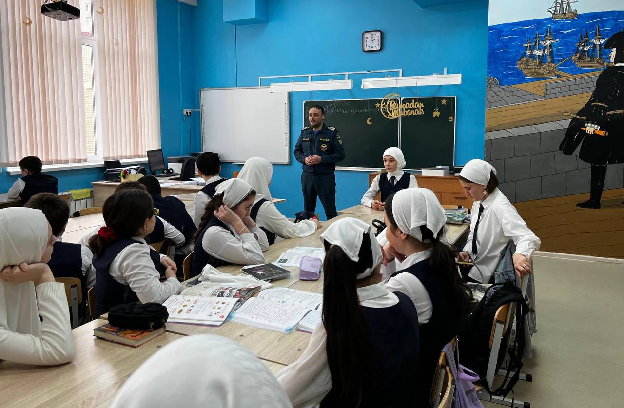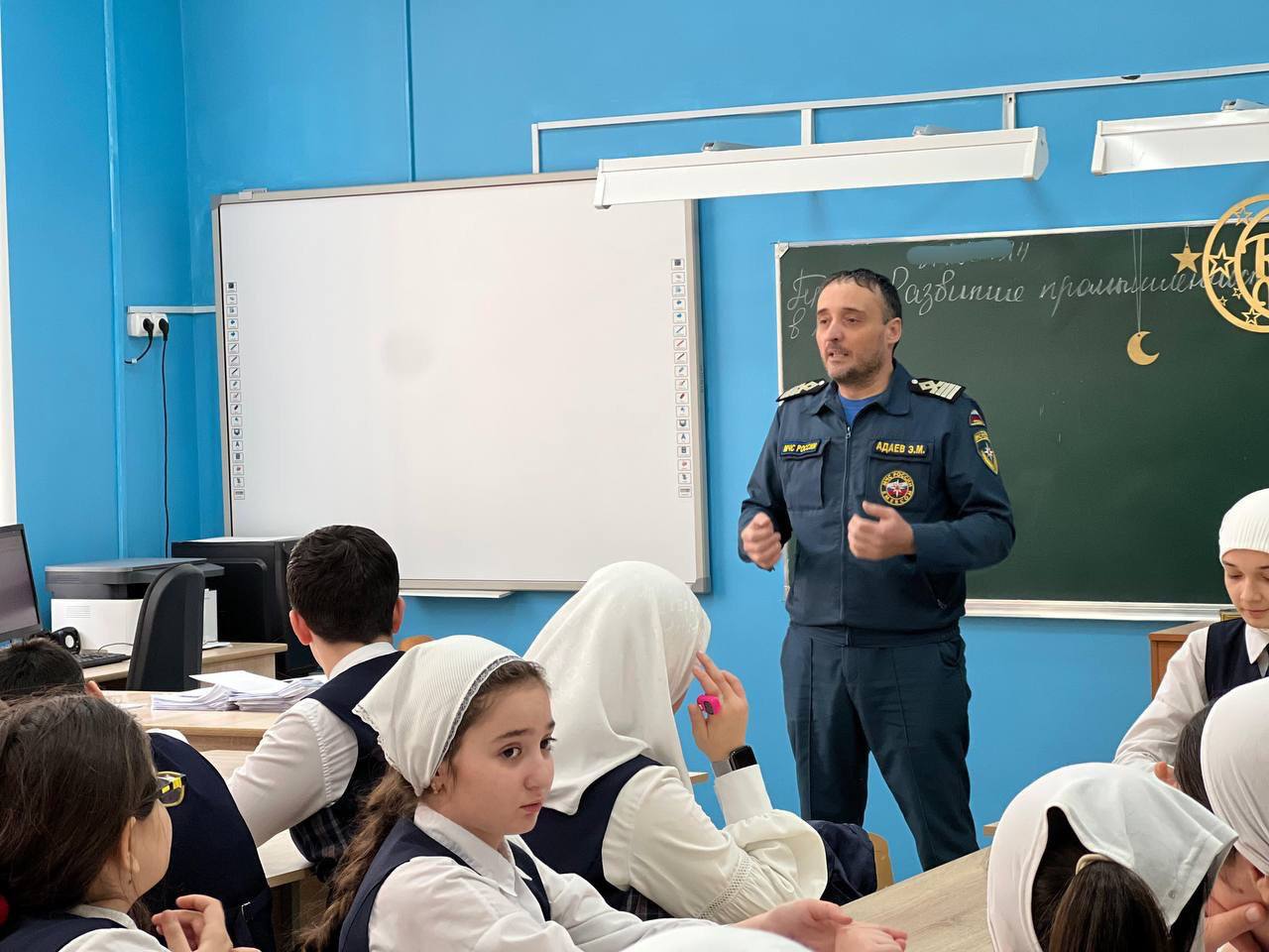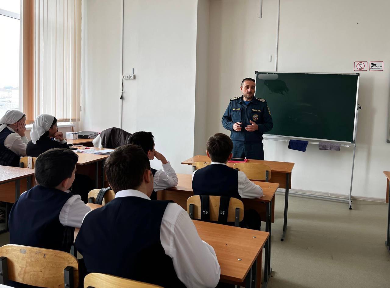 Представитель ГУ МЧС по ЧР наставляет школьников Грозного