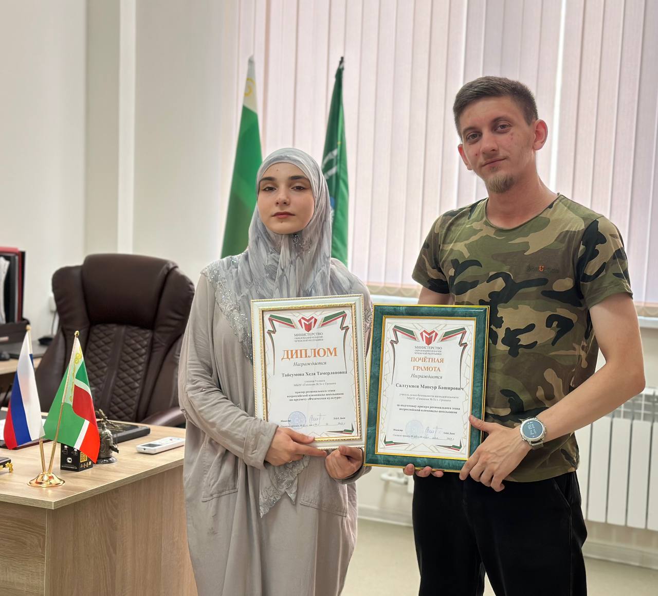 02.08.2024В рамках реализации федерального проекта «Успех каждого ребёнка», являющегося одним из ведущих в составе национального проекта «Образование», инициированного Президентом России Владимиром Путиным, ученица 9 класса Гимназии № 5 г. Грозного Тайсумова Хеда принимала участие во Всероссийской олимпиаде школьников по физической культуре и стала призёром республиканского этапа, заняв уверенное 2 место. За такое достижение Хеда была отмечена Дипломом МОиН ЧР, а подготовивший её учитель Салтукиев М. Б. почётной грамотой Минобрнауки ЧР за подготовку призёра. Под руководством Салтукиева Мансура они уже с августа начали интенсивную подготовку к участию во ВсОШ в 2024-25 учебном году по ОБЗР.