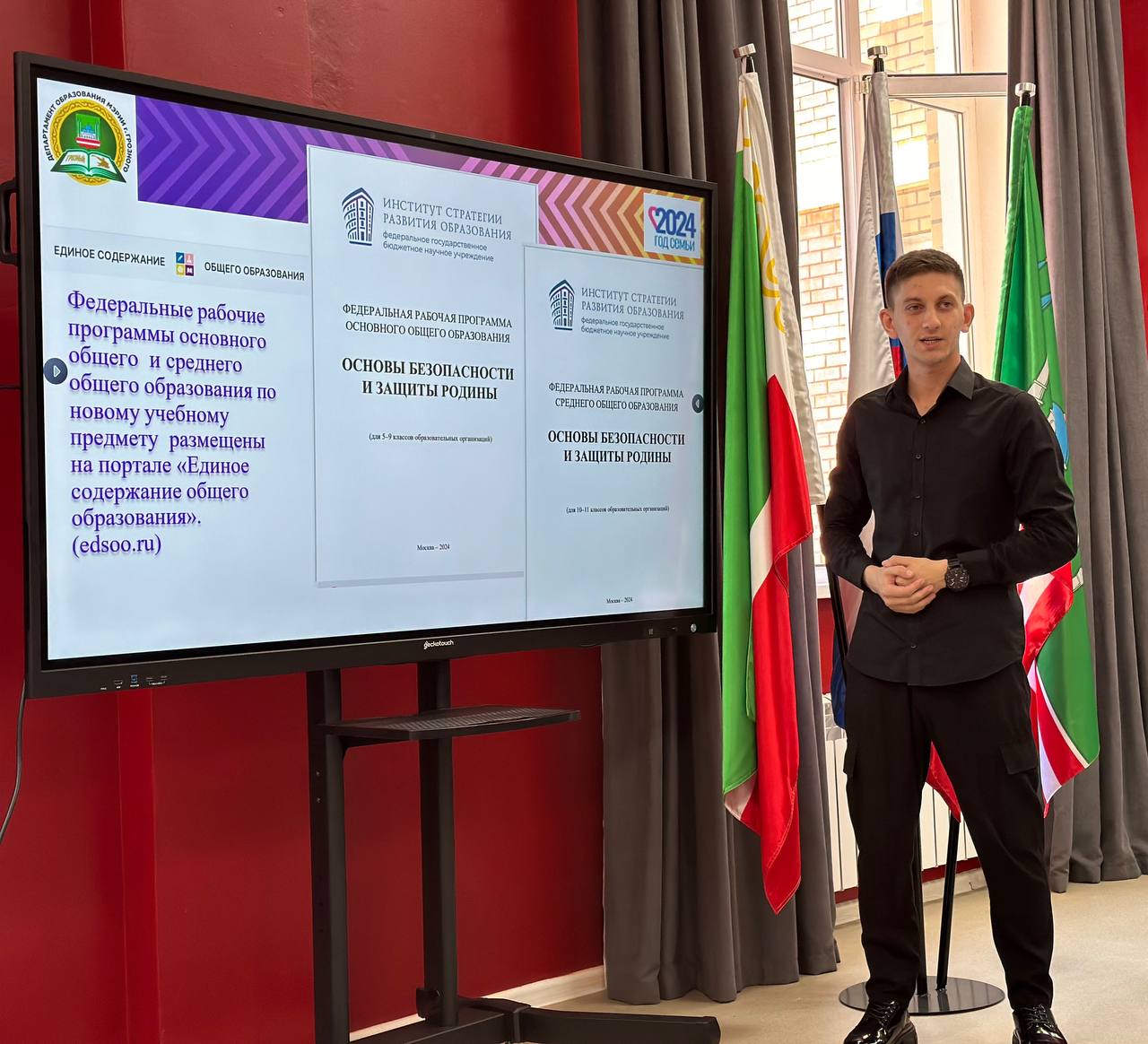 27.08.2024В рамках реализации федерального проекта «Учитель будущего», входящего в перечень портфеля национального проекта «Образование», созданного по решению Президента Российской Федерации Путина Владимира Владимировича, для учителей ОБЗР всех школ г. Грозного был организован круглый стол, в рамках которого были обсуждены все главные вопросы, касающиеся внедрения новой предметной области и предстоящих курсов повышения квалификации. Заместитель директора по МР – учитель ОБЗР Гимназии № 5 Салтукиев М. Б. будучи молодым специалистом был включен в список председателей стола и выступил с докладом на тему «Предмет ОБЗР: основные направления, структура и содержание курса».