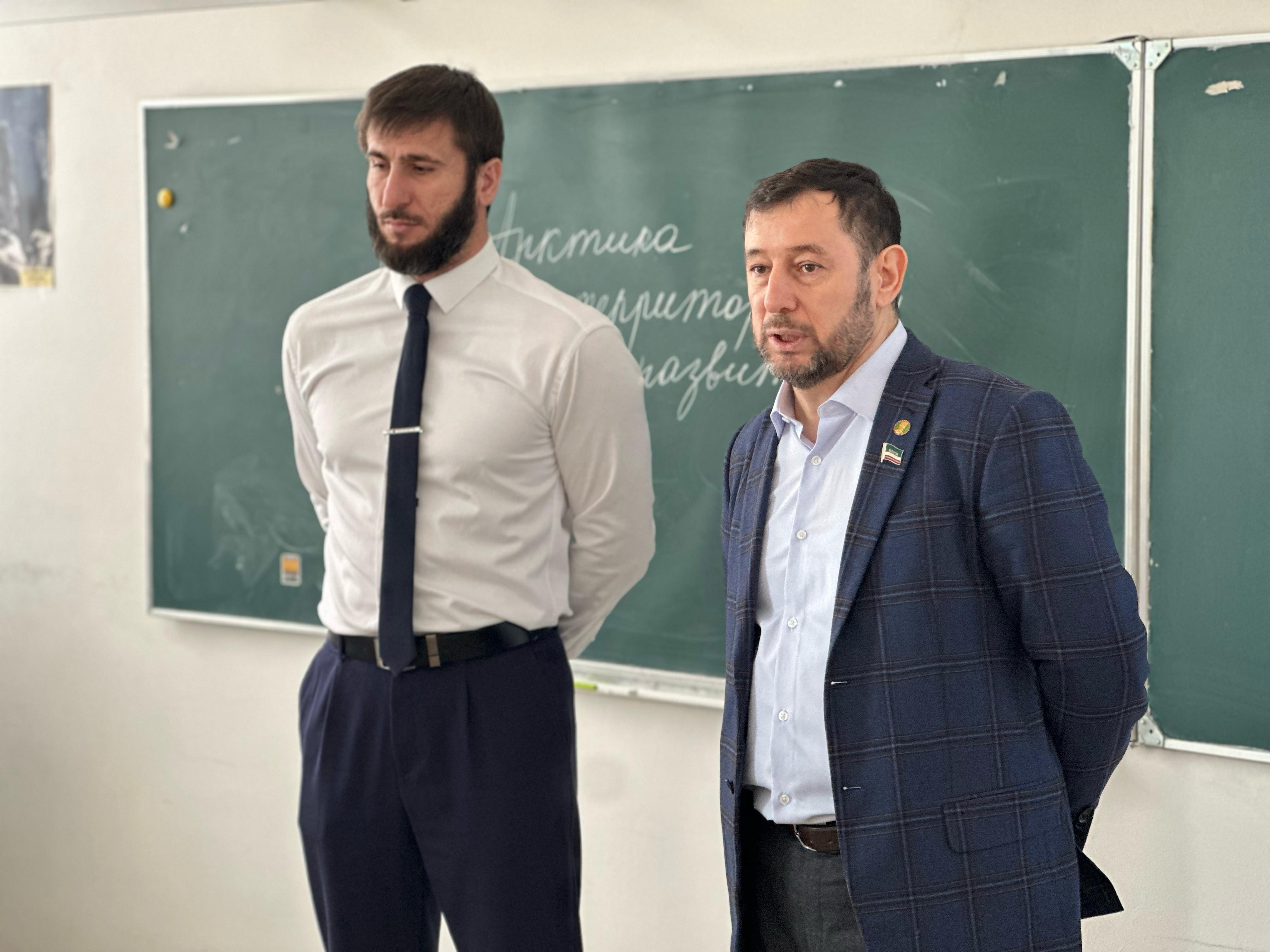 20.02.2025В рамках реализации республиканского плана мероприятий, Депутат Парламента Чеченской Республики Иса Хаджимурадов посетил столичную гимназию № 5 и наградил победителя и призёра республиканского конкурса на лучший рисунок, посвящённый родному краю - Исакова Ясина, ученика 6 класса и Мадаева Халида, ученика 7 класса. А также провёл воспитательную беседу с учениками гимназии.